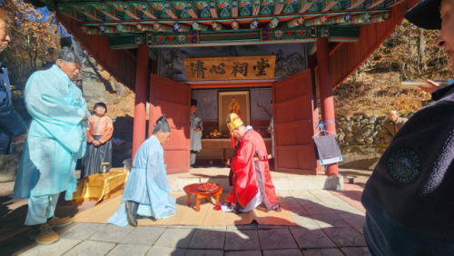 청심제는 조선 태종 시대 관기 ‘청심’의 절개와 숭고한 사랑의 정신을 기리기 위해 마을 사람들이 매년 지내는 제사다. 조선 태종 시대 대도호부사 양수가 강릉 부사로 재임하다 6년간의 임기를 마치고 한양으로 영전하게 되자 오랜 세월 사랑을 나누던 강릉 관기 청심과 청심대에서 이별의 슬픔을 나누며 1년 뒤 다시 돌아오겠다고 약조했으나 결국 오지 않자 청심은 절벽 아래로 몸을 던졌고 후대의 사람들이 청심의 절개를 기리고자 그 절벽 위에 사당을 짓고 청심의 이름을 따 청심대라고 불렀다. 또 청심의 위패를 모시고 마을에서 넋을 위로하기 위해 매년 제를 지내고 있다. 평창=조상원기자