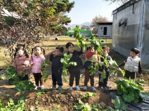 비발디파크 어린이집 교직원과 원생들은 28일 서면 행정복지센터를 방문해 어려운 이웃에게 전달해 달라며 깍두기 50통, 라면 50박스를 기탁했다. 깍두기는 학부모들이 참여한 김장 행사를 통해 마련됐다.